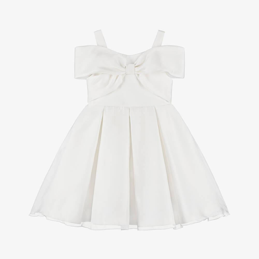 Girls Ivory Pleated Bow Dress