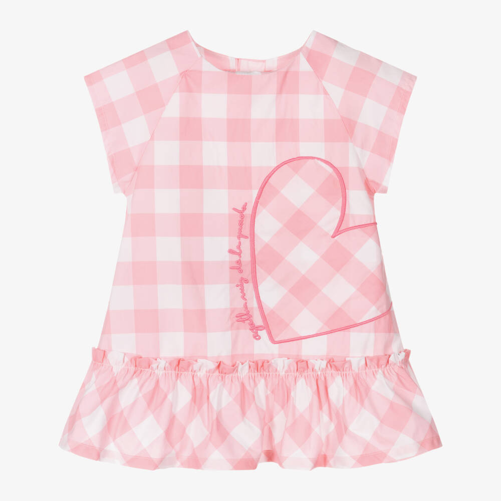 Girls Pink Cotton Gingham Heart Dress