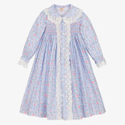 Luxurious silk nightdress for girls by AMIKI Children, in a lovely blush pink shade. Designed for comfort in a relaxed fit, it has a gently elasticated neckline trimmed with a satin bow. The puffed sleeves are edged with embroidered white chiffon for a beautiful finish.