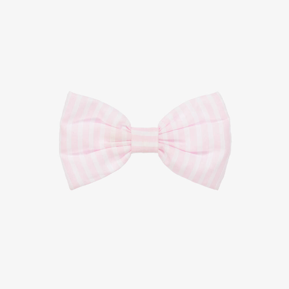 Pink and white bow hair clip for girls by A Dee, made in a soft cotton blend with light padding. This striped accessory adds a pretty finishing touch to any hairstyle. It slides easily into the hair and secures with a metal clip.
