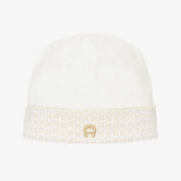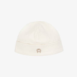 A sweet pale pink hat for baby girls by AIGNER, made in beautifully soft Pima cotton jersey for a comfortable feel against delicate skin. For designer appeal, the brand's signature 'A' horseshoe logo is printed on the turn-up brim in metallic gold.