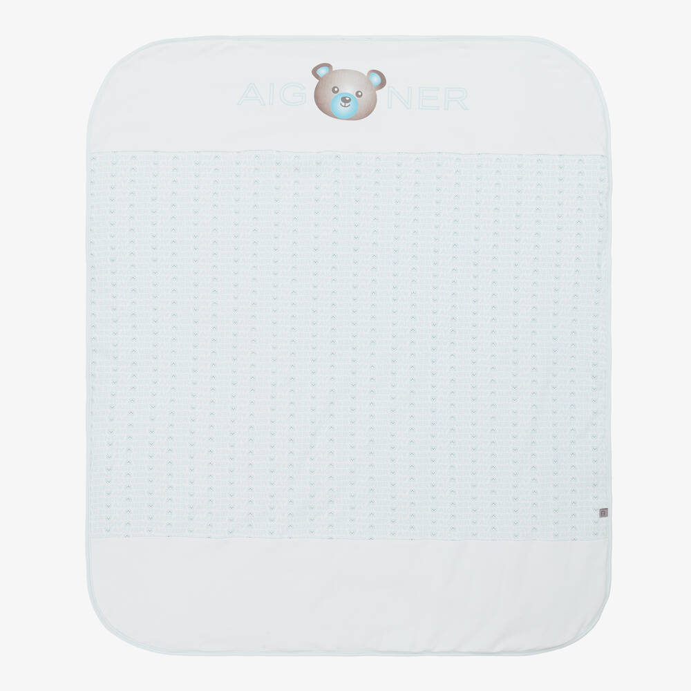 Sweet pale blue blanket for baby boys by AIGNER, made from super soft Pima cotton jersey with lightweight padding. Providing gentle comfort for delicate skin, this cosy blanket has a cute teddy bear logo pattern and print. A versatile accessory, it is ideal for use in the pram, car seat or nursery, and as a soft surface for tummy time.