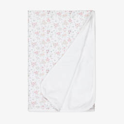 Lovely blue blanket for baby girls by Babidu, made in soft cotton jersey. Patterned with ditsy florals, it makes the ideal accessory for the nursery and when out and about with baby.