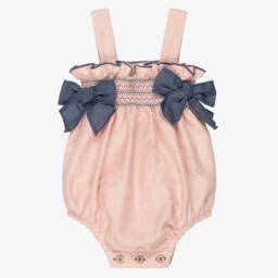 Beautiful white shortie for baby girls from Babidu, woven in super soft, plumeti cotton muslin. This traditional babysuit has a charming ruffle collar and sweet puffed sleeves with elasticated cuffs. Button fastenings on the back and between the legs complete the classic style.