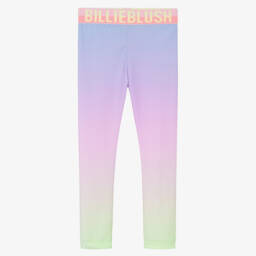 Neon pink leggings for girls by Billieblush, made in silky smooth and stretchy fabric. These full-length leggings have a dark pink heart design on one leg with a positive quote in bright yellow lettering. The elasticated tape waistband is boldly branded with the designer's name.