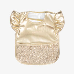 Fun, iridescent pink bib for baby girls from Billieblush. Designed with an easy wipe-clean finish, it has a quilted heart pattern and a transparent, star print overlay filled with colourful star confetti. The stretchy strap fits easily over the head and there is a front pocket with a neon pink logo tab to complete the look.