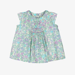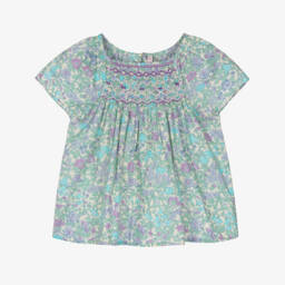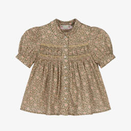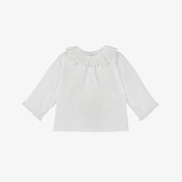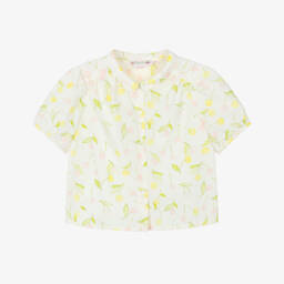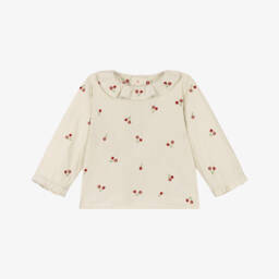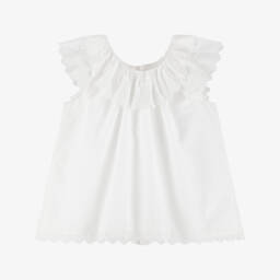 Charming ivory cotton blouse for girls by Bonpoint, with embroidered red scalloped trims for a classic look. Lovely and lightweight, it has pretty puffed sleeves and delicate button fastenings. The brand's cherry logo is embroidered in red just above the hem for a signature finish.