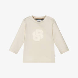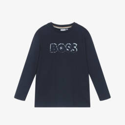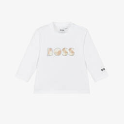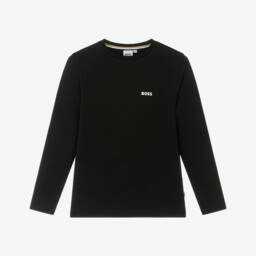Black Mini-me cotton top for boys by BOSS. It has the brand's eye-catching Double B monogram logo printed on the chest in gold, inspired by the Lunar New Year. Made in comfortable jersey, it has further branding with the designer's signature coloured tape inside the neckline.