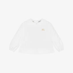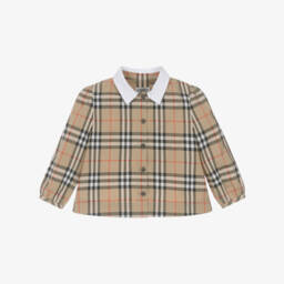 Lovely for baby girls, this beige shirred blouse is by luxury British brand Burberry. Patterned in the designer's distinctive Burberry Check, it is made in soft organic cotton poplin with frilly hems. Lined in lightweight voile, it fastens with buttons on the back.