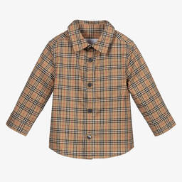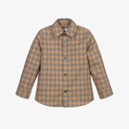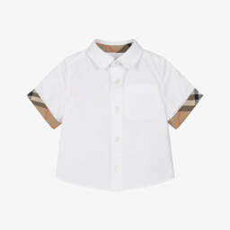 A white cotton shirt for boys from iconic fashion house Burberry, styled with a pointed collar and front button. Smart and minimalistic, this long-sleeved shirt is signed with tonal EKD logo embroidery on the patch pocket. The designer's signature shade, Knight Blue, can be found threaded through the lower button. In sleek and lightweight poplin for comfort, this garment contains organic cotton.