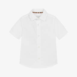 قميص قطن عضوي بوبلين لون أبيض للأولاد