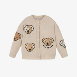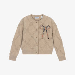 كارديغان صوف محبوك بخطوط أيقونية بيج للبنات