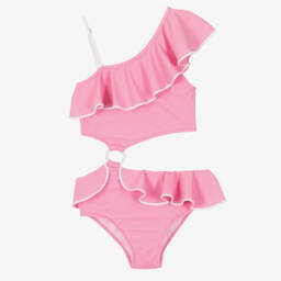 As seen in the main collection, this red swimsuit for teen girls is by luxury British brand Burberry. Making a bold designer statement, it has a large varsity-inspired logo in red and white on the front. Silky soft and stretchy, the swimsuit is fully lined for comfort. The main material of this product is made with at least 70% recycled content.