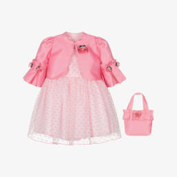 In a pretty shade of ivory, dress set for little girls by Caramelo Kids. Knitted in super soft cotton, the bodice is embellished with silver diamantés and a pink satin bow. The tulle skirt is lined with soft cotton voile, adding volume and comfort. It pairs with an adorable ivory knitted turban, with a matching bow and glamorous silver diamantés to complete the girly look.