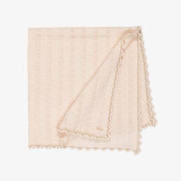Charming ivory blanket for baby girls from luxury label Chloé, knitted in a warm blend of organic cotton and soft cashmere. For a subtle designer touch, a tonal intarsia logo details one side and there is a scalloped trim around the edge. A lovely addition to your little one's nursery, this beautiful accessory is ideal for keeping baby warm and cosy when out and about in the pram or stroller.