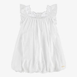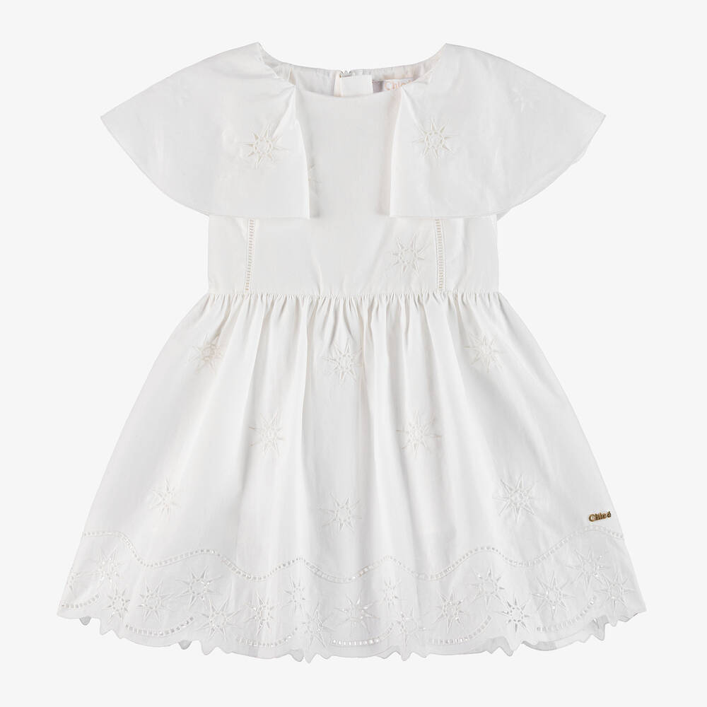 فستان قطن عضوي مطرز لون أبيض للبنات