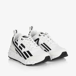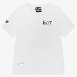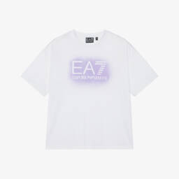 Both casual and stylish, this white and black cotton leggings set for girls from EA7 Emporio Armani, has rubberised branding for instant designer appeal. Made in soft jersey, the T-shirt has a sporty split hem and the leggings have a comfortable elasticated waistband.