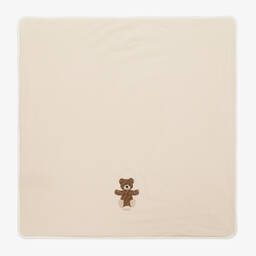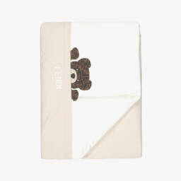 Light blue padded blanket for baby boys by Italian luxury fashion house Fendi. Made in soft cotton jersey for a gentle feel against the skin, it has a white poplin panel and a tonal embroidered logo on one side. A versatile nursery accessory, the blanket's soft padding makes an ideal surface to lay baby on.