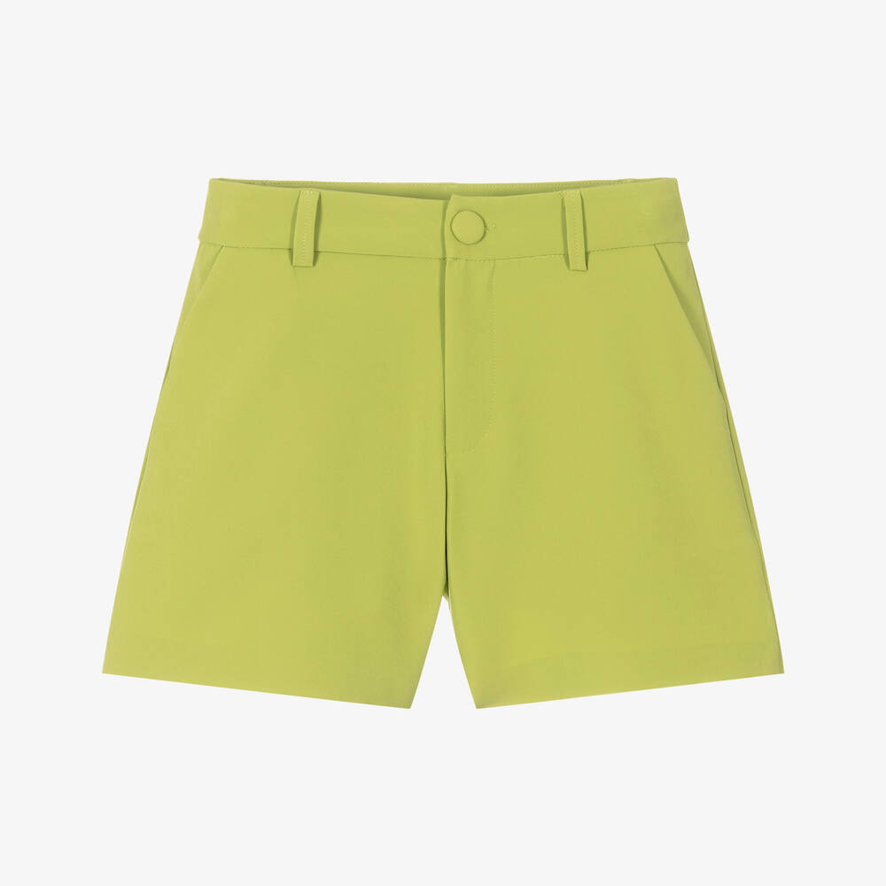 In a smart shape, these citrus green shorts for older girls are from H.Love by Fun & Fun. Made in soft crêpe fabric, they have slanted front pockets and handy belt loops for stylish accessorizing. They have an adjustable waistband with a neat button and zip fastening.