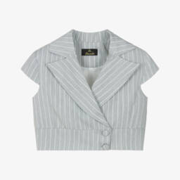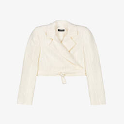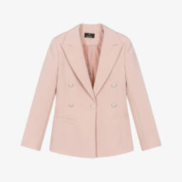 A stylish pink blazer for older girls by Italian label Fun & Fun Couture, made with soft crêpe for a luxurious feel. Ideal for a special occasion, this double-breasted, slightly fitted style has a revere collar and a single vent at the back. Diamanté trimmed splits at the front add a sparkly finish.