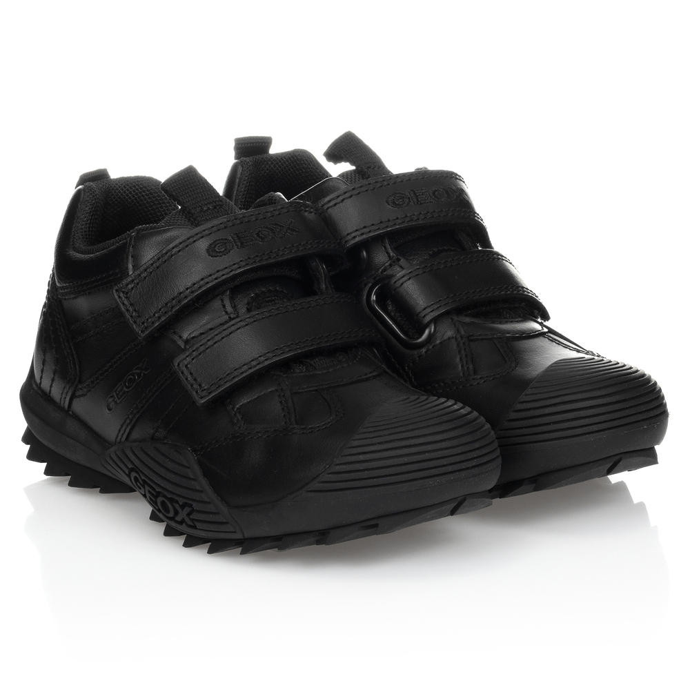 Boys leather trainers by Geox, with velcro fastening and reinforced rubber toes and heels. Ideal shoes for school, they are breathable, antibacterial and shock absorbing, and are designed with durable heel and toe protection. They have a non-slip, non-marking rubber soles.