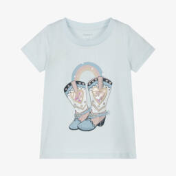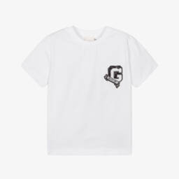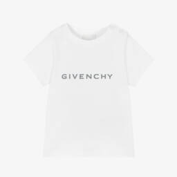 A light blue cotton T-shirt for boys and girls by French fashion house Givenchy, inspired by the adult collection. Adding a bold, elevated look to this casual top, the 4G logo is printed in white on the back, in addition to the Givenchy lettering on the front.