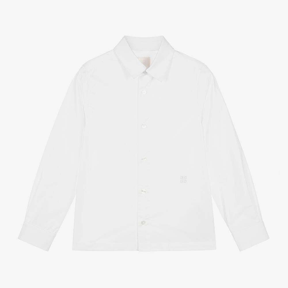 Inspired by the adult collection, a timelessly stylish white cotton shirt for boys from Givenchy. This wardrobe staple has a subtle, tonal 4G logo embroidered on the front.