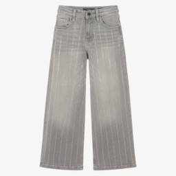 Blue denim jeans for boys by Guess, with added stretch for comfort. In a classic five-pocket style, they have a grey ribbed jersey waistband, with a popper and zip detail. A small Triangle logo is stitched onto the back pocket for a signature finish.