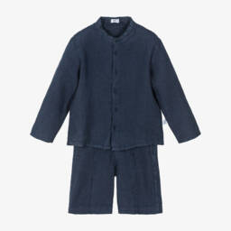 This ivory cotton blanket for baby boys by luxury brand Il Gufo gives a charming, cosy touch to any nursery. Beautifully soft and knitted, it has an embroidered teddy bear design at its centre, in beige and navy blue. Warm and comfortable, it is ideal for wrapping up little ones when out and about in the buggy or car seat.