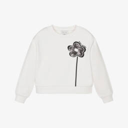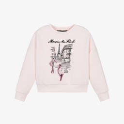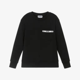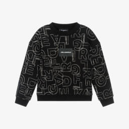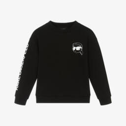 Mini-me black sweatshirt for girls by KARL LAGERFELD KIDS, made in soft cotton-blend double jersey. Casual, but sylish, this collarless top has dropped shoulders, a wide hem and full sleeves. There is a bold white 'Café de Karl' design embroidered on the front and a small white logo printed on the back.