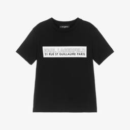 Girls white T-shirt by KARL LAGERFELD KIDS, made in soft organic cotton jersey. It has a black Karl Signature logo on the front, outlined with black disc sequins for extra sparkle.