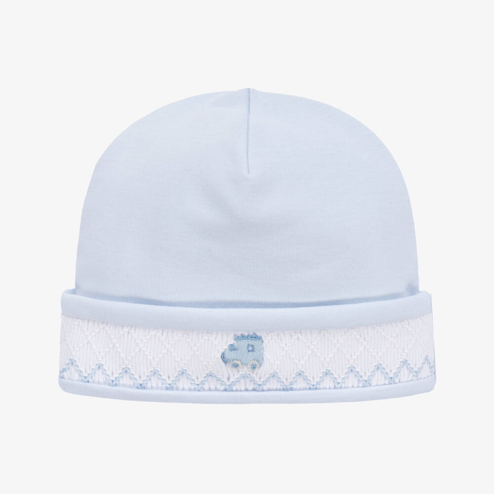قبعة قطنية زرقاء مطرزة يدويًا للأولاد