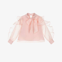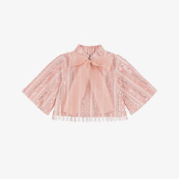 توب مزين بالريش لون زهري للبنات