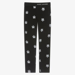 Stylish black leggings for girls by MARC JACOBS, patterned with diamantés that sparkle beautifully in the light. Made in soft and stretchy cotton jersey, these full-length leggings have an elasticated waistband with a diamanté logo to complete the look.