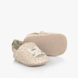 Super sweet, these pale gold pre-walker shoes for baby girls are by Mayoral. Made from shiny faux patent leather, they are decorated with fluffy tonal pom-poms and perforated detailing on the toes. They are lined in soft cotton jersey for comfort and have flexible faux leather outsoles with non-slip rubber panels for better grip.