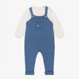 A light beige dungaree set for younger boys by Mayoral, made in a lightweight linen and cotton blend. This neutral outfit set features a pair of short dungarees with wooden button fastenings on the front and poppers between the legs. A matching sun hat ties under the chin to keep it in place on bright, sunny days.