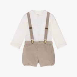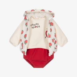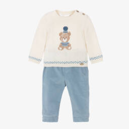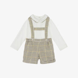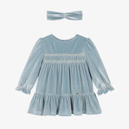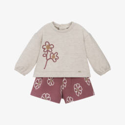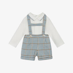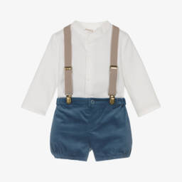 Cute blue shorts set for girls by Mayoral. The T-shirt is made in soft cotton jersey, with short flutter sleeves and bow detailing on the front. Knitted in a lightweight lacy fabric, the shorts have a fun zigzag pattern in shades of blue and white. They are lined in soft cotton jersey and have an elasticated waist for a comfortable fit.