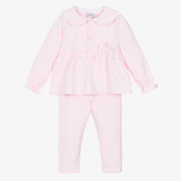 طقم بنطلون بطبعة ورود قطن لون زهري
