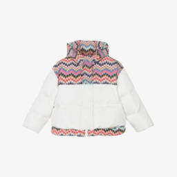 White organic cotton T-shirt for girls by luxury brand, Missoni. The label's iconic logo can be found on the front of this casual style, bedazzled with rhinestones in the signature zigzag design.