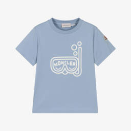 Super cute lilac purple T-shirt for little girls by French luxury brand Moncler Enfant, made in comfortable cotton jersey. Fastening with shoulder poppers, it has the brand's unmistakable logo on the front with a blue embroidered outline and colourful lettering within.