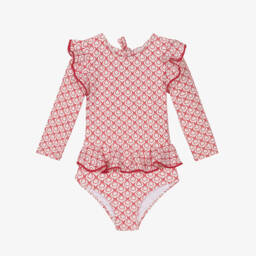 مايّو لون أبيض وأبيض للبنات (UV50)
