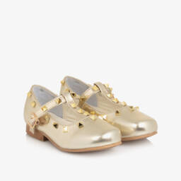 Beautiful gold pumps for girls by Old Soles, made in soft leather. The pretty braided strap fastens easily with velcro across the foot. The comfortable, cushioned insole provides support, and the non-slip rubber soles improve grip.