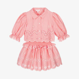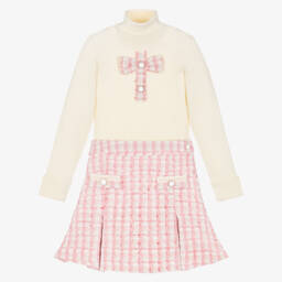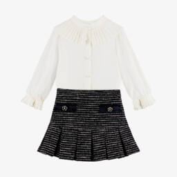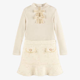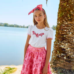 طقم تنورة قطن لون أبيض للبنات