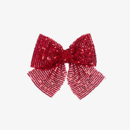 Pink bow hair clip for girls by Phi Clothing, woven in lightweight plumeti cotton with embroidered stripe detailing. A lovely finishing touch to any outfit, the bow is set on a metal crocodile clip that slides securely in the hair.