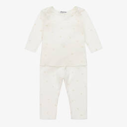 طقم ليقنز قطن بطبعة ورود لون عاجي للمولودات