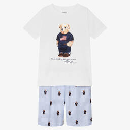 Girls pink cotton jersey pyjamas by Ralph Lauren, offering a delightful blend of comfort and style. They feature a classic button-up top with a smart collar and contrast green piping and the matching shorts have an elasticated waist for easy wear. Ideal for warmer nights, these pyjamas provide softness and breathability, ensuring a restful night's sleep. The signature pony logo is embroidered on both pieces for a distinctive designer finish.