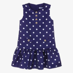 فستان دنيم بطبعة لون أزرق فيونكات