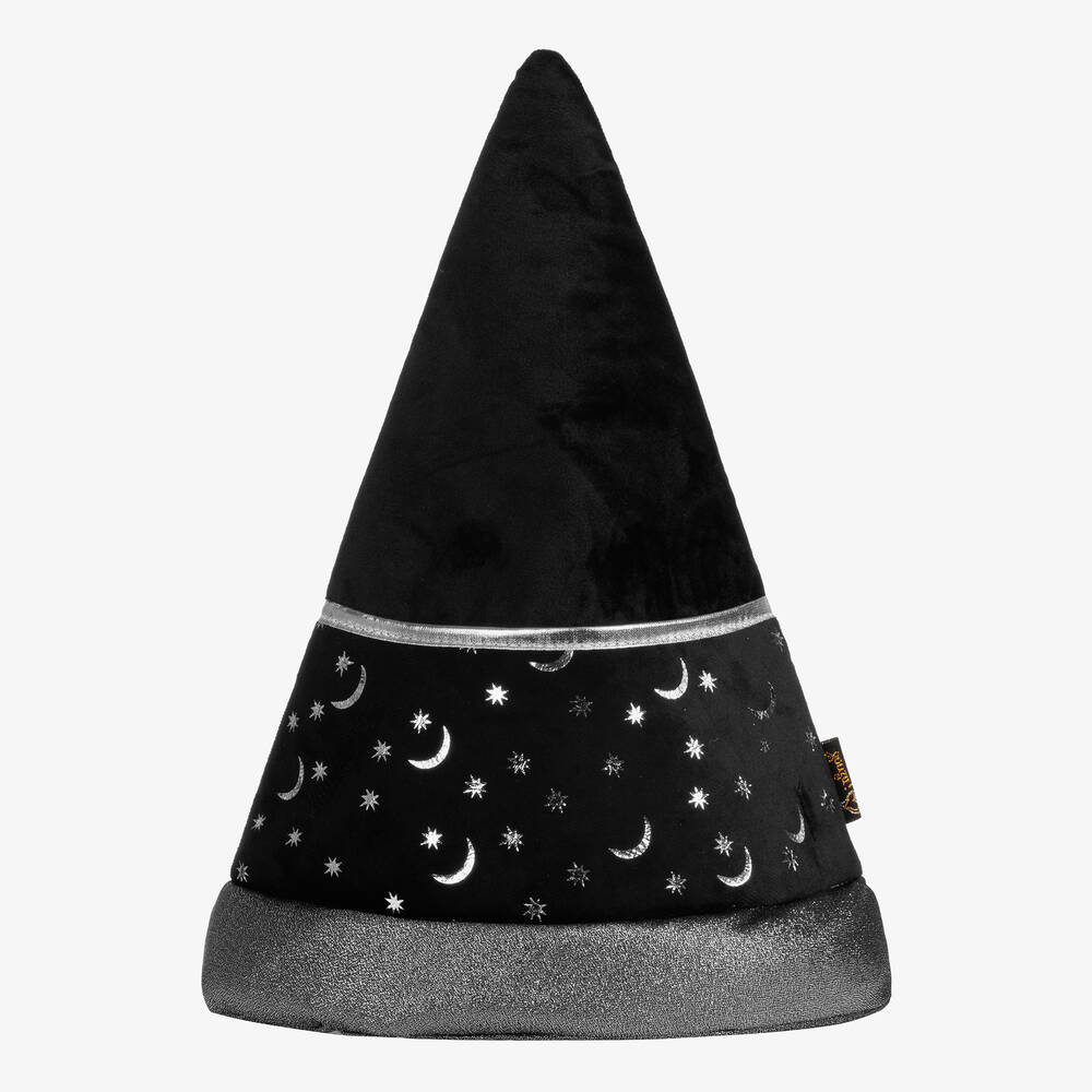 Fun for boys and girls, a black wizard's hat from Souza. The ideal finishing touch for a costume, it is made in soft velvet with a silver heart and star print and sparkly silver trim.