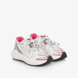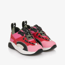 Cool high-top trainers for girls from Stella McCartney Kids. The uppers are made from soft mesh and durable faux leather for comfort. The thick rubber soles have multicoloured bottoms which match the neon laces for a fun finish.