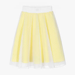 Patterned in a pretty blue floral print, this white skirt for girls is by Tartine et Chocolat. Made lightweight cotton, it has a stretchy shirred waist with a charming peplum ruffle. A branded pearlescent heart charm at the hem adds a subtle designer finish.